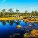 Pierwszy dzień to wycieczka do Dunikas Purva Taka czyli torfowiska na bagnach położonego niedaleko granicy z Litwą. Łącznie ścieżka ma ok. 5 km. ale na sporej długości stan drewnianego podestu nie jest najlepszy i czasami trzeba się troszku nagimnastykować aby suchą stopą przejść dalej. Niemniej jednak zdecydowanie warto się tam udać bo było bardzo zielono i dziko. Torfowiska znajdują się na terenie rezerwatu przyrody Dunikas, gdzie znajdują się bagna powstałe 7 000 lat temu. Było to pierwsze tego typu bagienne wrzosowisko jakie widzieliśmy ale nie ostatnie podczas tego wyjazdu. Znajduje się tam wiele niewielkich jeziorek otoczonych kolorowym mchem i bagienne wyspy porośnięte drzewami. Na bagnach rosną też karłowate sosny.